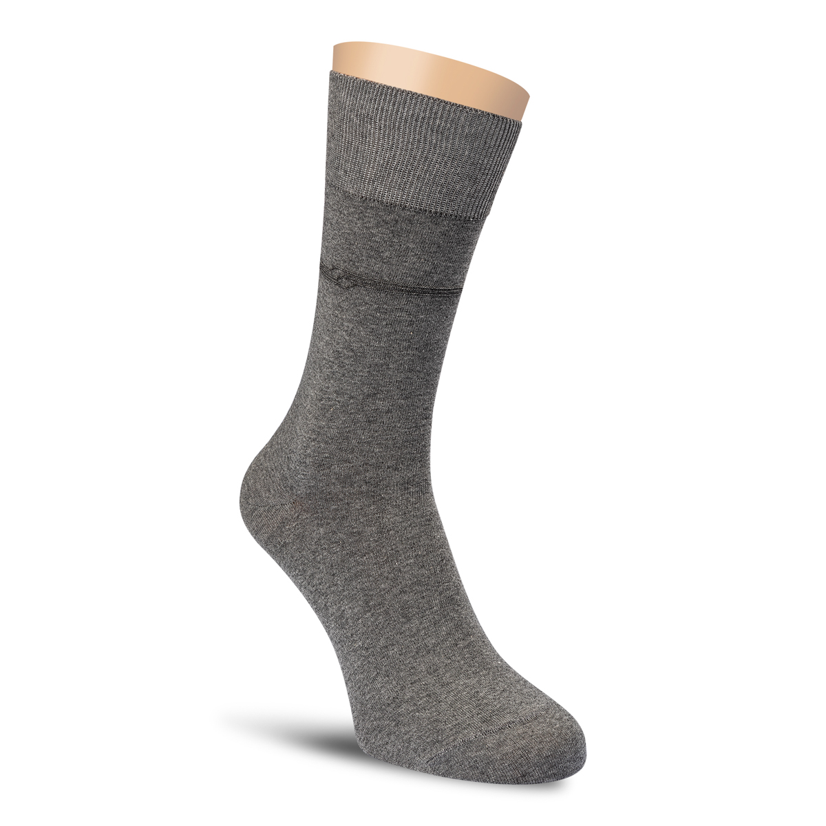 Мужские носки с классическим костюмным высоким паголенком с круговым объемным фактурным рисунком. Отличительная особенность модели - однобортная анатомическая резинка, не перетягивающая ногу и не создающая дискомфорта.| Характеристики носков | |