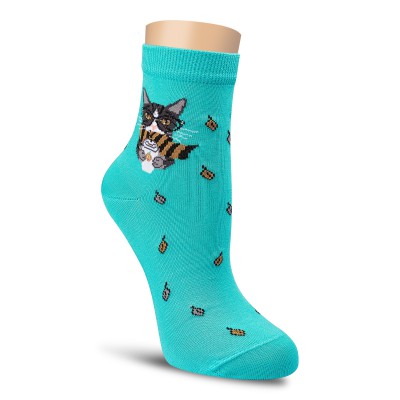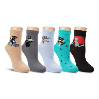 Женские хлопковые носки средней плотности с добавлением полиамида и эластана. Модель представлена в пяти различных дизайнах.