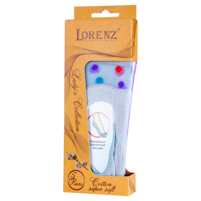 Подарочный набор в оригинальной фирменной коробке Lorenz состоит из 5 пар женских подследников с прозрачной вставкой (Артикул И30), изготовленных из мягкого хлопка высочайшего качества.